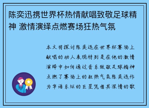 文章摘要:世界杯,作为全球最具影响力的体育赛事之一,凭借其极高的关注度和热烈的氛围,每四年吸引亿万观众的目光。在这场激情燃烧的盛宴中,球迷们和运动员共同铸造了无数的历史瞬间,也见证了足球的文化和精神如何在全球蔓延。本篇文章将从四个方面详细分析这场“世界杯盛宴”对世界足球迷的意义:一是世界杯的全球影响力,二是足球比赛中的文化碰撞与交流,三是数据和技术对比赛影响的分析,四是世界杯对球迷情感和社会互动的...